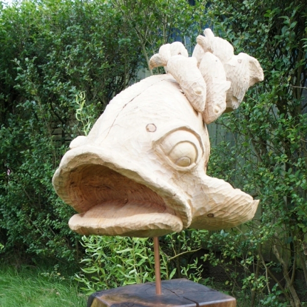 hakt ze met een bijl een duivelshond, die je ook wel op kerken ziet. Inmiddels heeft ze