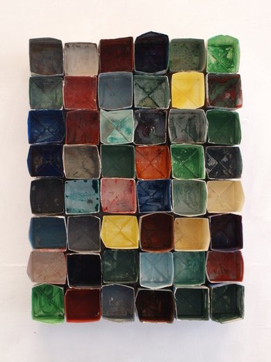 Helga Kock Am Brink: leuk portret M.B. vooral de opmerking van Roderik,associatie rangeerterrein. Inspirerend. Het muurobject, wit,gapend,